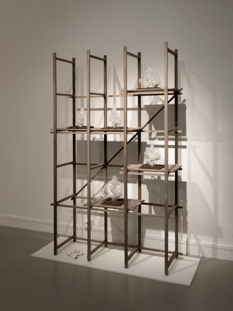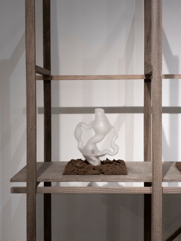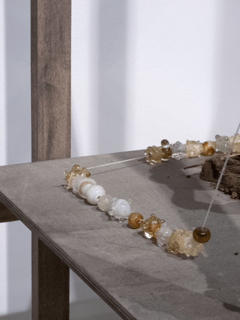 Les délaissées, installation, bois, terre et verre borosilicate, Juin 2024.